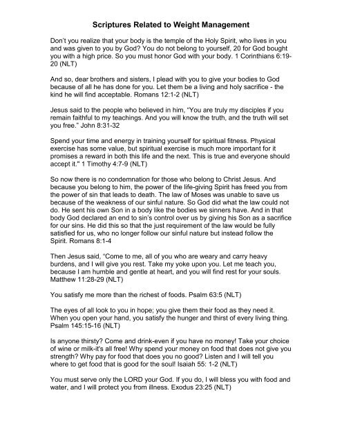 Scriptures Related To Weight Management Faith And Health